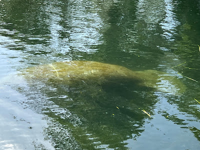 After spending time with the Three Sisters, we finished up the day with a one hour narrated cruise on Kings Bay. More than 70 springs feed close to 600 million gallons of water per day into Kings Bay. This cool, clear water then flows into the Crystal River and out to the Gulf of Mexico. Initially we had thought that we would kayak some, but ended up opting to take the easy way out, relaxing on a pontoon boat. We're used to seeing manatees around Anna Maria Island (AMI) and we had already seen a few scattered about over the three previous days. Shortly after leaving the dock, we came upon a small pod of 10-15 that were lazily enjoying a Friday afternoon floating around, munching on grass (they're vegetarians) and not paying any attention to the passengers on the boat that were ecstatic at the sighting. Narration along the journey was provided by an entertaining young man who had grown up in the area. He had some great information about all things Crystal River, as well as stories of the celebrities such as Elvis, John Travolta and Tom Petty who, like us, had spent some time enjoying Florida's Nature Coast!